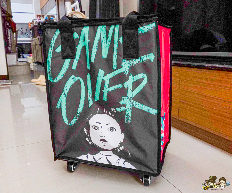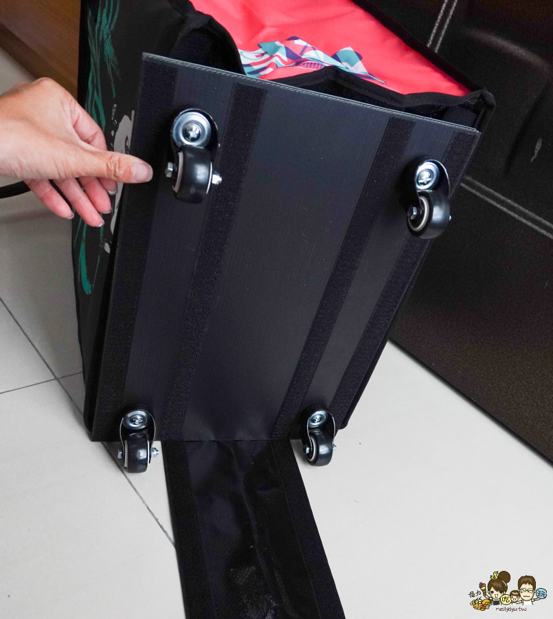 可以當購物袋,保冷袋~重點還有提供四輪板子