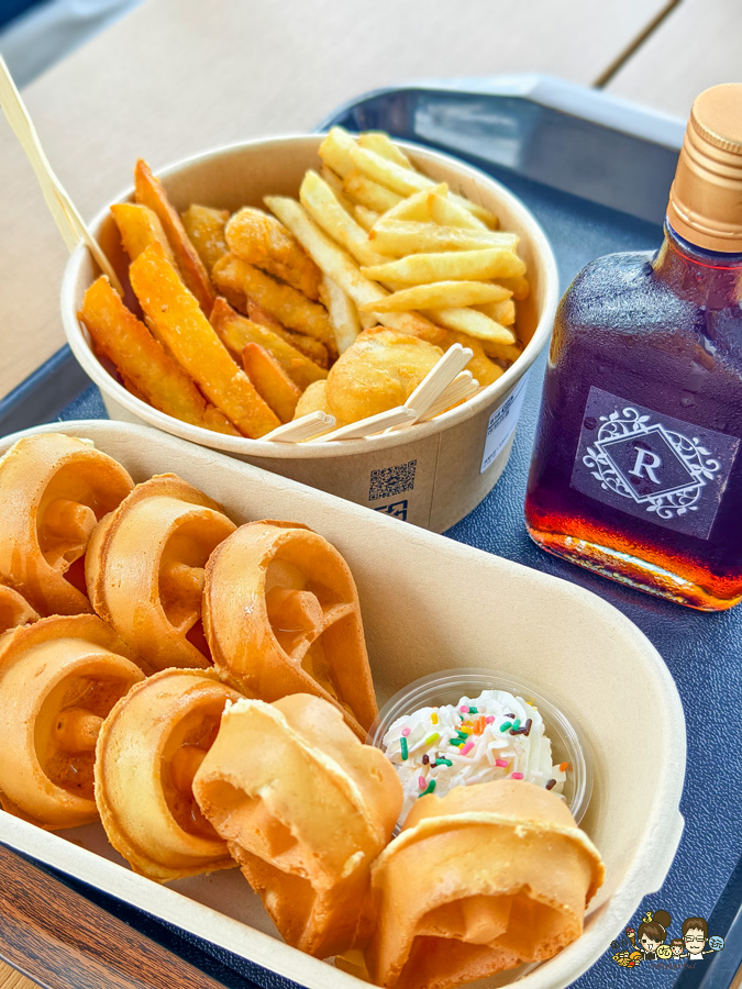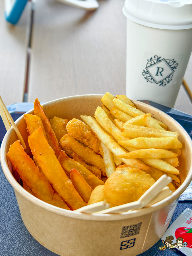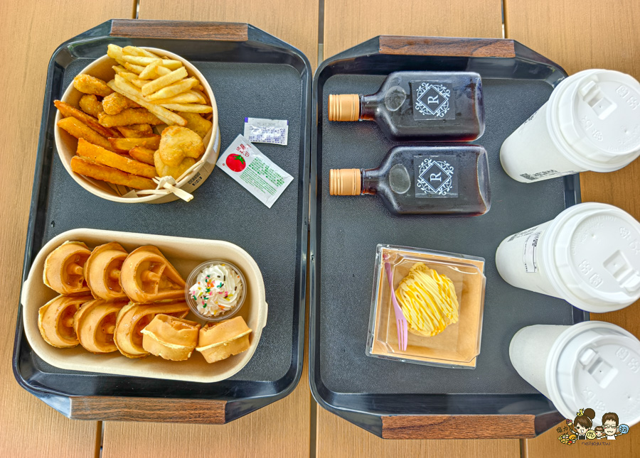 可以來下午茶休憩,點飲品、小甜點、炸物來分享