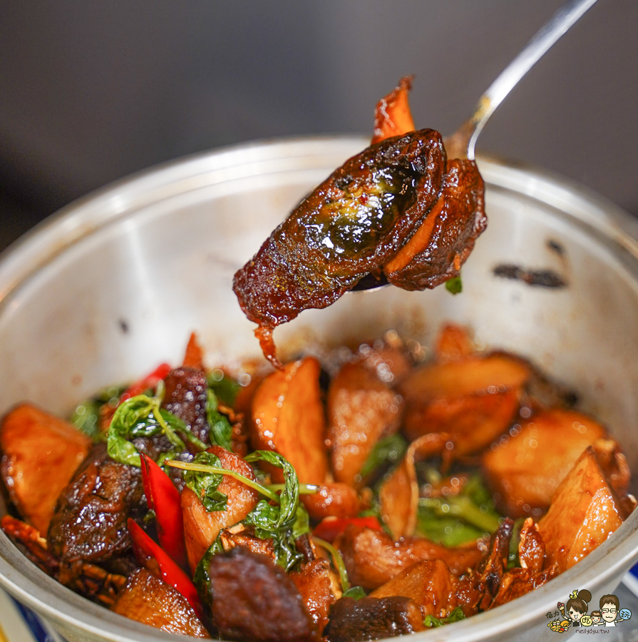 自家純手工釀製的鹽烤鹹豬肉,用高粱、獨門藥膳