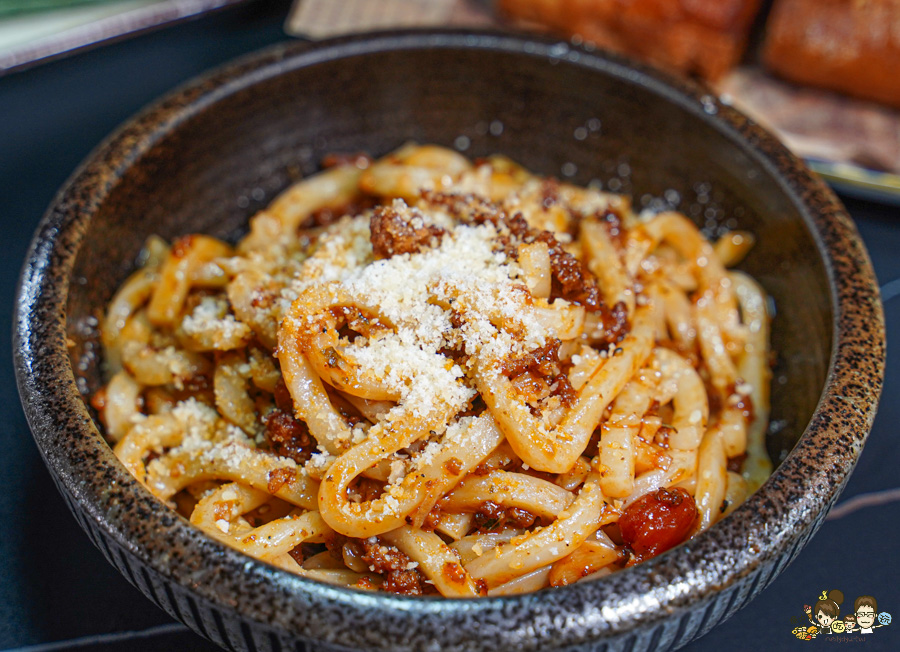 滑溜順口帶出烏龍麵的軟Q,整個吸附了紅醬香氣